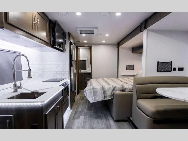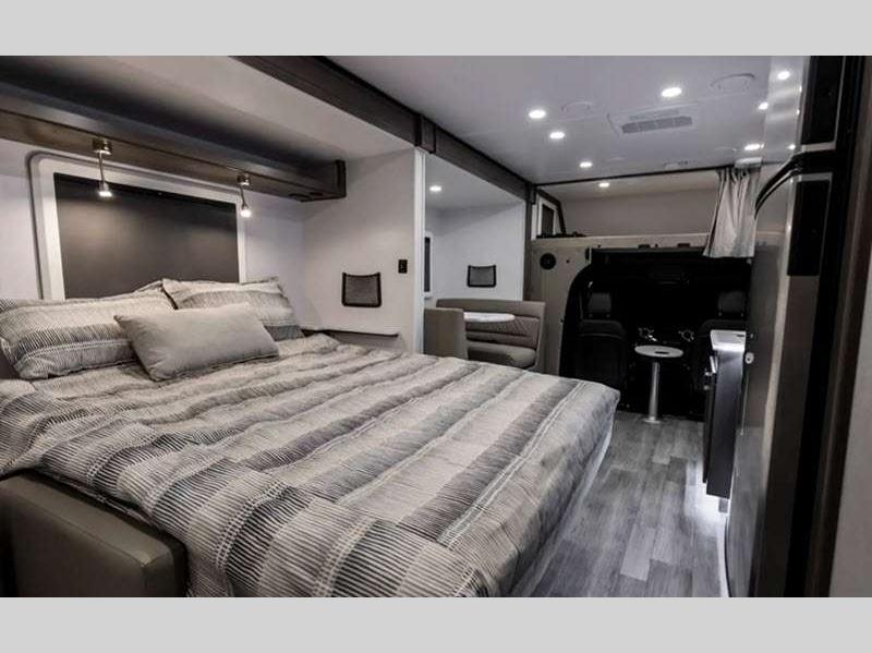 Sleeps 3 Slides 1 Length 24 ft 7 in Ext Width 7 ft 10 in Ext Height 11 ft 5 in Int Height 6 ft 9 in Interior Color Saddle, Milano II Exterior Color Full Body Paint; Magnetic, Varesine Blue, Titanium Hitch Weight 5000 lbs GVWR 11030 lbs Fresh Water Capacity 35 gals Grey Water Capacity 32 gals Black Water Capacity 32 gals Tire Size 16" Furnace BTU 20000 btu Generator Flex Power™ 4000i LP Fuel Type Diesel Engine 2.0L I-4 Chassis Mercedes Benz Sprinter Horsepower 208 hp Wheelbase 170 in Available Beds Queen Torque 332 ft-lb Refrigerator Type 12V Two Door Compressor Driven Refrigerator Size 8 cu ft Convection Cooking Yes Cooktop Burners 3 Number of Awnings 1 Axle Weight Front 4410 lbs Axle Weight Rear 7720 lbs LP Tank Capacity 20.3 gals Water Heater Type Truma Aqua Go Comfort On Demand AC BTU 15000 btu TV Info LR 32" LED Smart TV, BR 32" LED Smart TV Awning Info 16' Armless w/LED Lighting and Motion Activated Retraction Gross Combined Weight 15250 lbs Shower Type Standard Electrical Service 30 amp Similar Floorplans