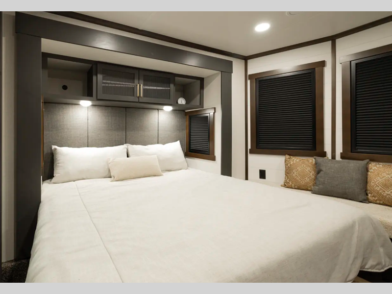 The 101" wide body frame provides a rock-solid base for your adventures, while the AlphaPly TPO roof membrane offers uncompromising durability and weather protection. Inside, the residential-style dovetail design gives a sleek, modern aesthetic, complemented by self-closing drawers and hidden hinge cabinet doors that exude refined elegance. Plus, the vinyl floor covering is effortlessly easy to clean and maintain.