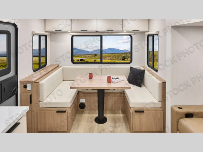 With any Thrive travel trailer by Winnebago, you can camp with functionality, comfort, and convenience! The large front viewing window with strike guard will be the first thing that catches your eye, and the fiberglass sidewalls with Azdel Onboard provide a durable trailer made to last. There is also an exterior ladder, along with front radius profile lights, power stabilizer jacks, and a powered awning with LED lighting to name a few exterior features. You will stay powered up by the 30-amp power cord and 200-watt solar panel, plus there is a tankless water heater for endless hot showers. Inside, you'll love the custom Winnebago furniture, carpetless side outs, molded fiberglass countertops, and residential recessed ceiling lights to keep your space well lit!